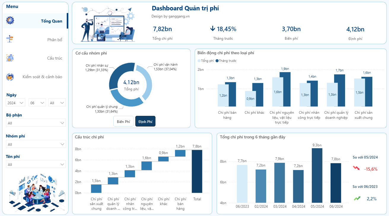 Dashboard Quản trị phí được xây dựng nhằm đáp ứng yêu cầu đó, không chỉ phản ánh tình trạng chi phí mà còn hỗ trợ nhận diện vấn đề, làm rõ nguyên nhân và chủ động phòng ngừa rủi ro trong quá trình vận hành.