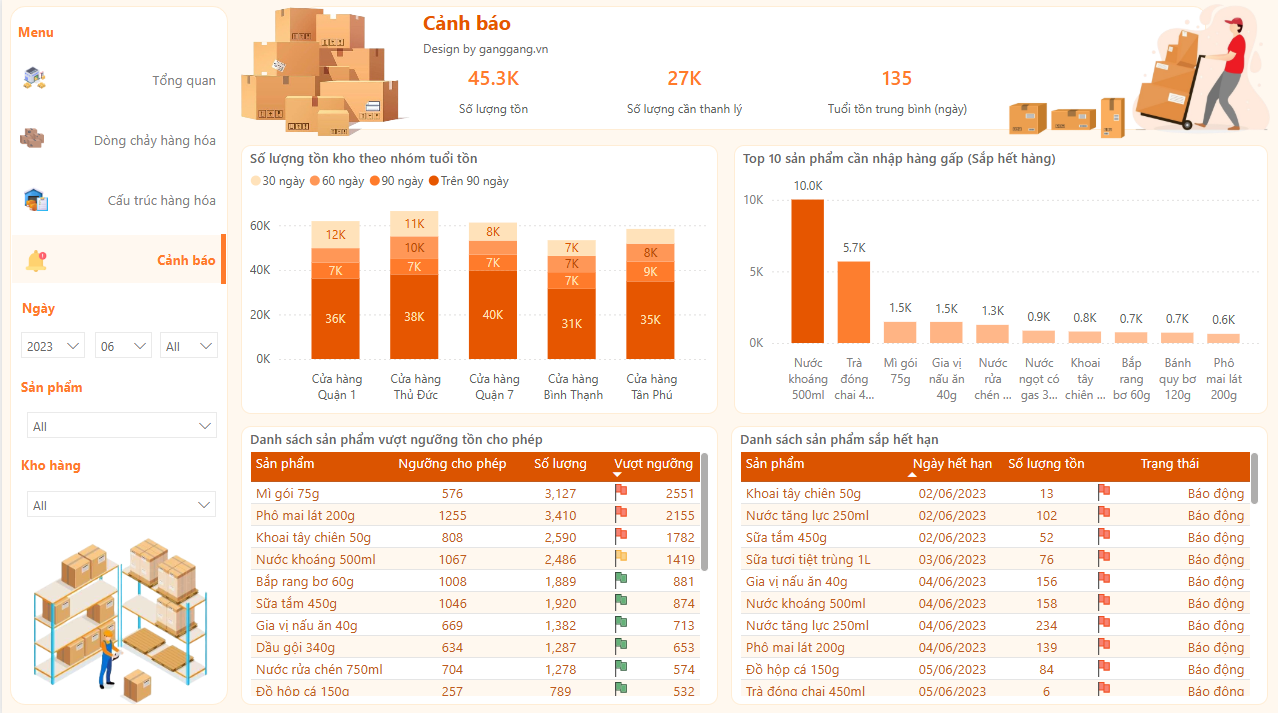 - Tồn kho vượt ngưỡng: nơi thể hiện trực tiếp từng mặt hàng đang tồn vượt mức an toàn và hướng xử lý ưu tiên.