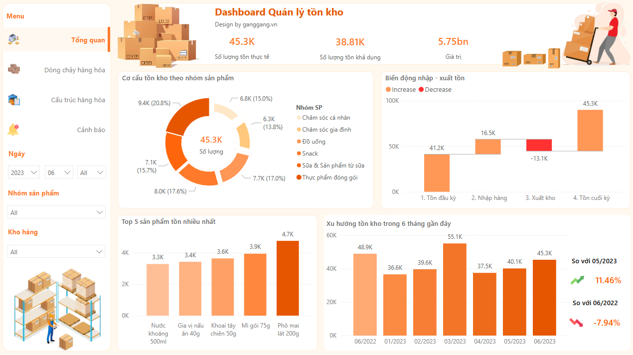 Việc sử dụng Dashboard Tồn kho giúp ban lãnh đạo nhanh chóng nhìn thấy bức tranh tổng thể về trạng thái tồn kho trước khi đi vào phân tích chi tiết.