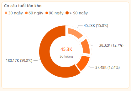 Bằng chứng thể hiện rõ qua phân bố tuổi tồn, trong đó phần lớn hàng hóa tập trung ở nhóm 60–90 ngày, phản ánh tình trạng luân chuyển chậm và cảnh báo nhu cầu điều chỉnh kế hoạch nhập – xả hàng trong các kỳ tiếp theo.